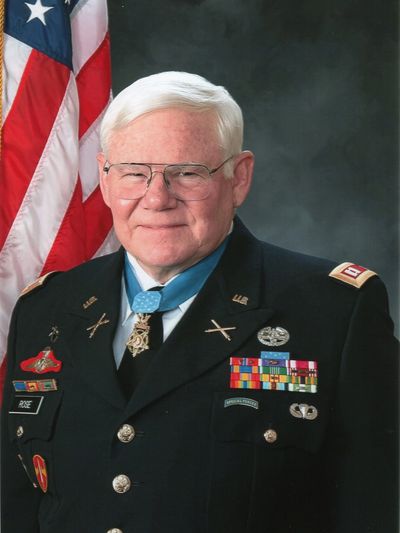 In addition to the Medal of Honor, Rose’s military awards include the Distinguished Service Cross, the Bronze Star Medal with one oak leaf cluster and “V” device, the Purple Heart with two oak leaf clusters, the Meritorious Service Medal, the Air Medal, the Army Achievement Medal, the Good Conduct Medal with two knots, National Defense Medal, Vietnam Campaign with star, Presidential Unit Citation (MAC SOG), Vietnam Civic Action Honor Medal, Vietnam Campaign Medal, Vietnamese Cross of Gallantry Unit Citation – with Palm Combat Medical Badge, Special Forces Tab, U.S. Army Parachute Badge, Thai Army Parachute Badge, Vietnam Parachute Badge, and several service ribbons.